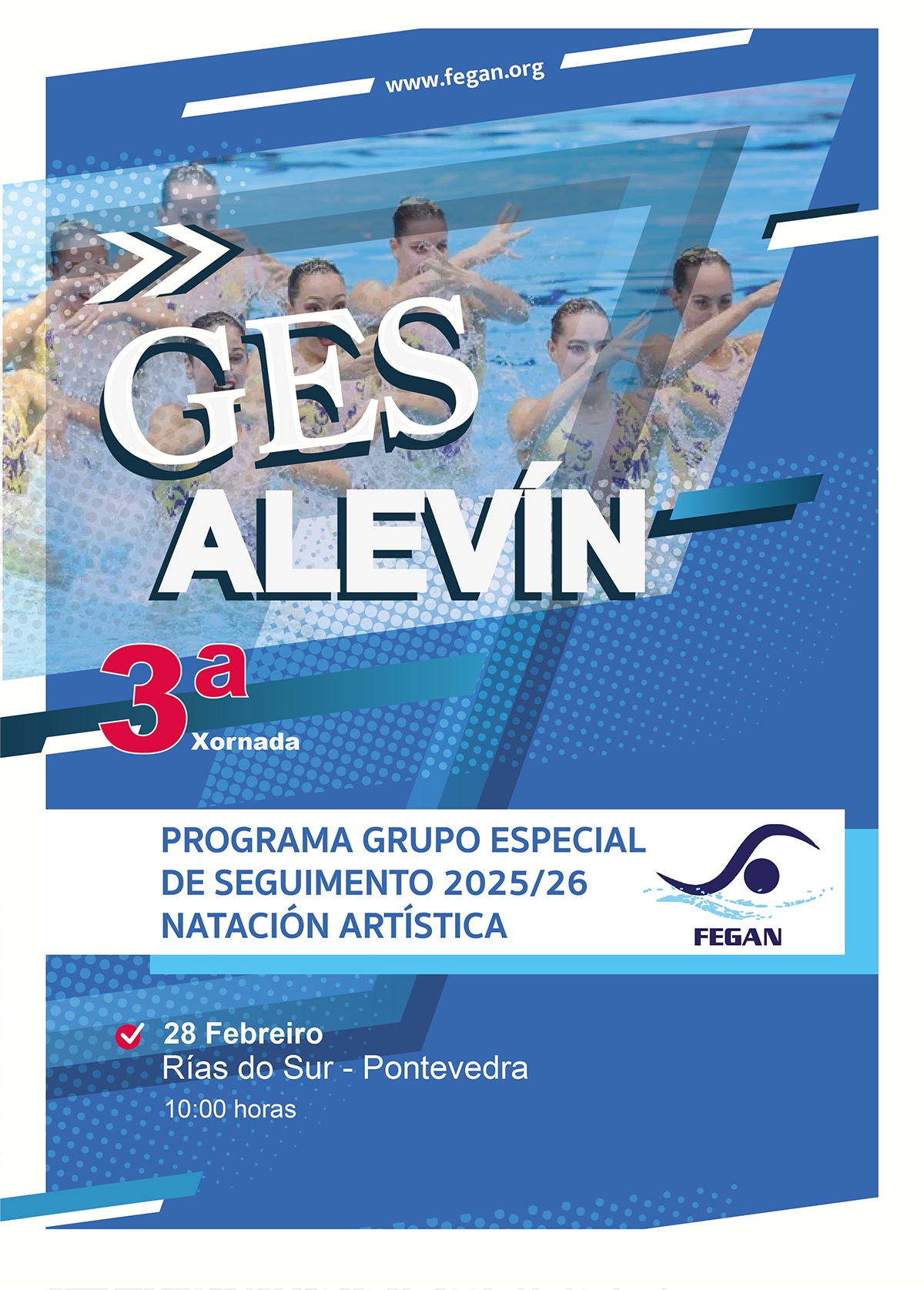 A Federación Galega de Natación organiza o I Campus de Semana Santa de Natación Artística para nenos e nenas nados entre o 2011 e 2015. Será do 28 de marzo ao 1 de abril na piscina Municipal de Lieiro, Cervo. Requisito obrigatorio ser federado e pertencer a disciplina de Natación Artística.