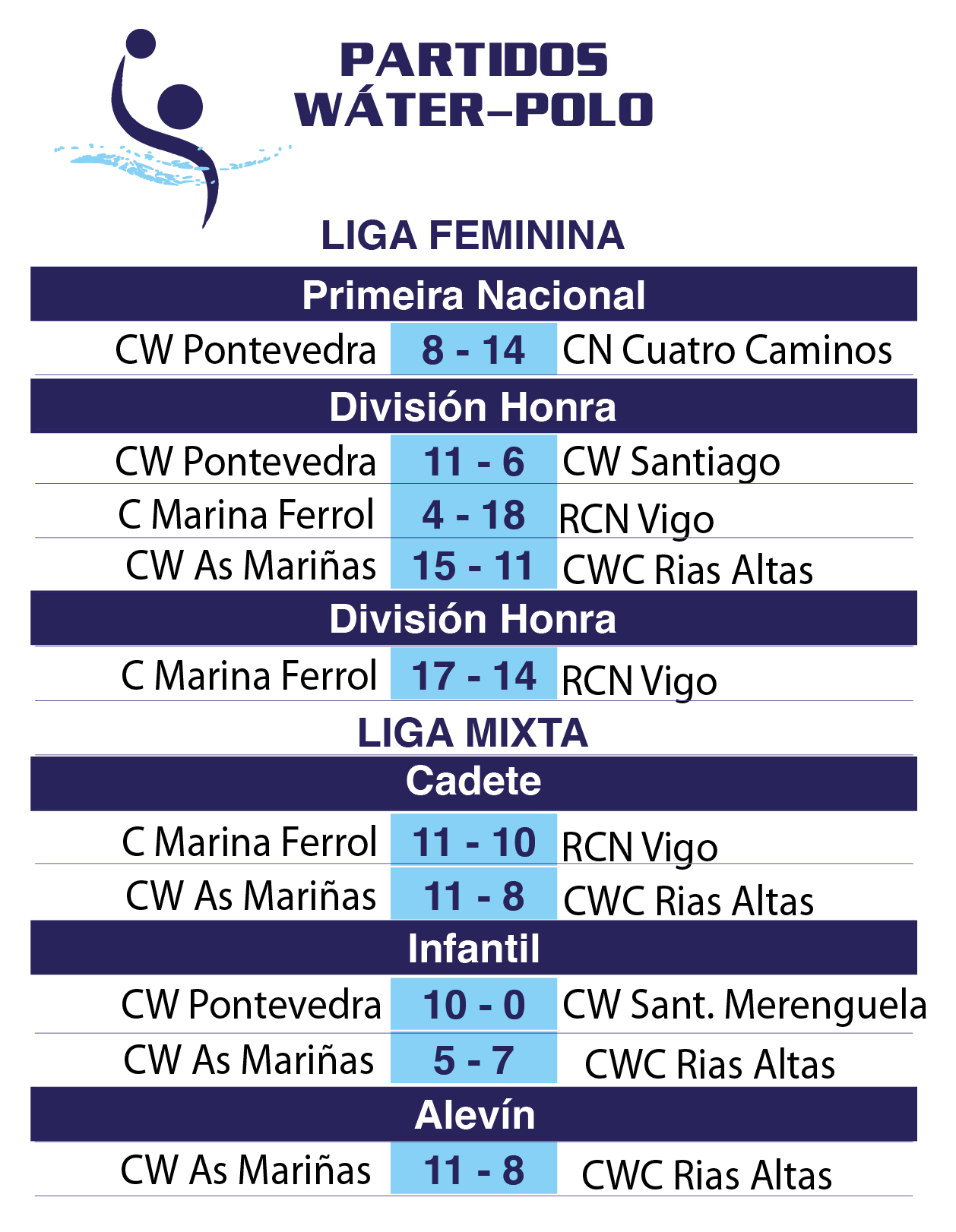 As 10:00 h. II concentración Infantil Masculina SUR e as 11:45 h. a III concentración Infantil Feminina. Como coordinadores Andrés Pérez e Isabel Pérez de CW As Mariñas.